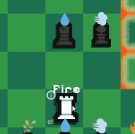 In this game, each chess piece has an element. If you attack a 🔥 fire bishop with a 💧 water rook, you end up with a ☁️ steam rook!